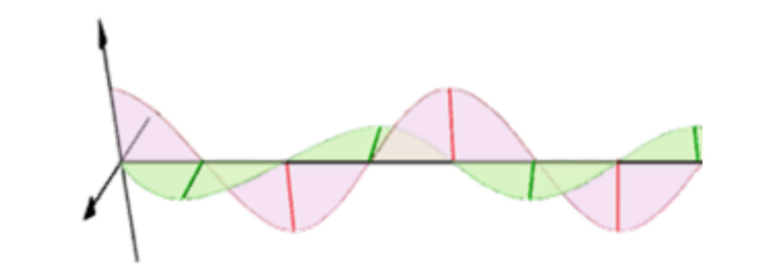 ※赤の波が最大値のとき、緑の波も最大値(色は波長とは無関係)