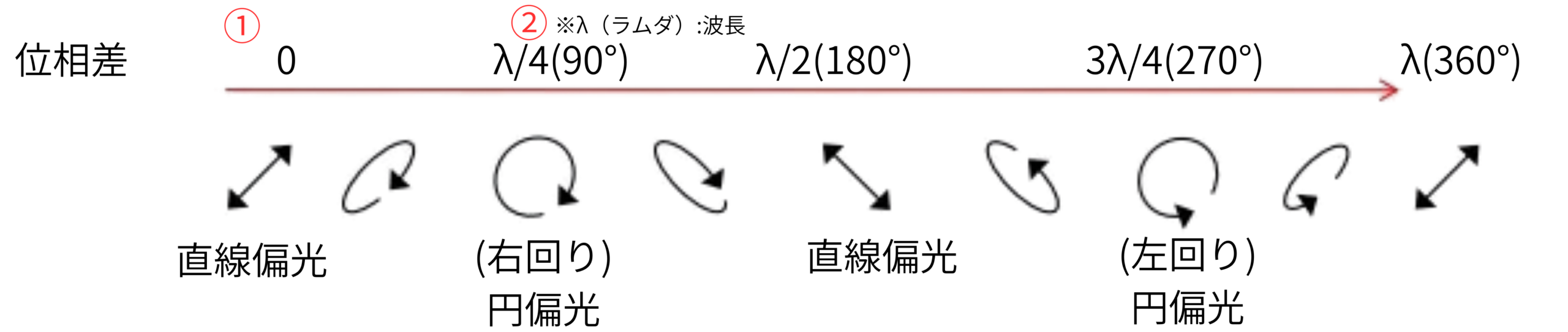 ※直交する2偏光の位相差が、偏光状態を様々に変化させる。